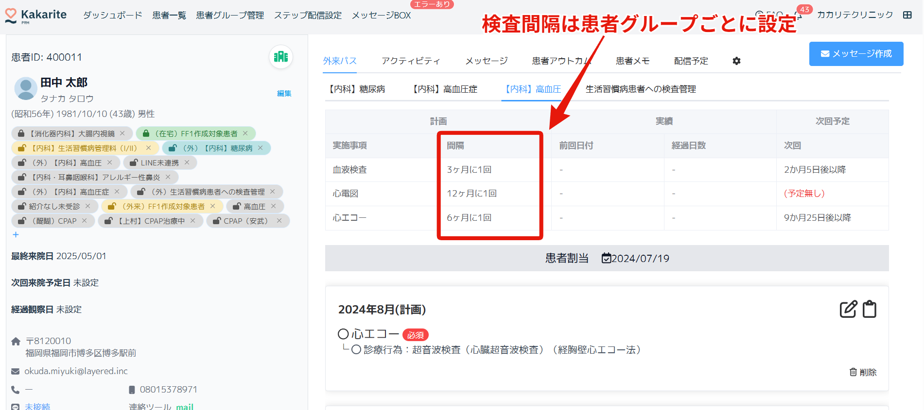 尚、「検査間隔」については患者グループごとに設定する形となっています。