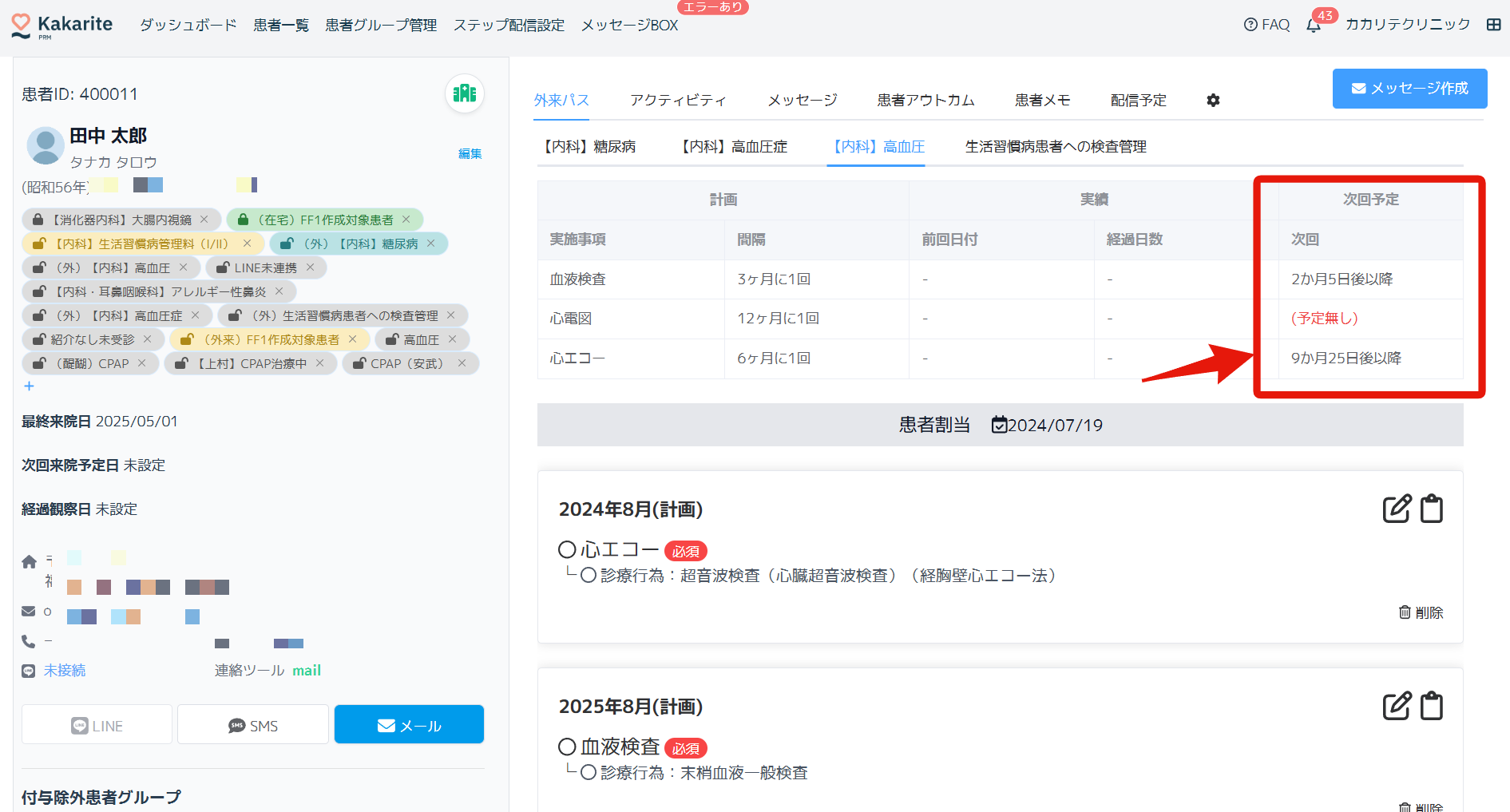この機能により、定期的な検査や診療が確実に行われるようサポートします。