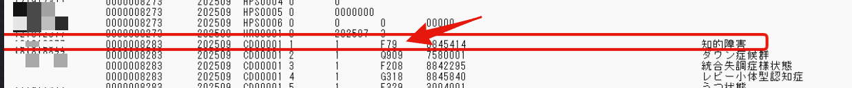例えば、知的障害「F79」であれば4桁目(0,1,8,9)が存在するため、「F79」での入力ではなく、可能であれば4桁目(F799など)までご入力頂くことが推奨されております。