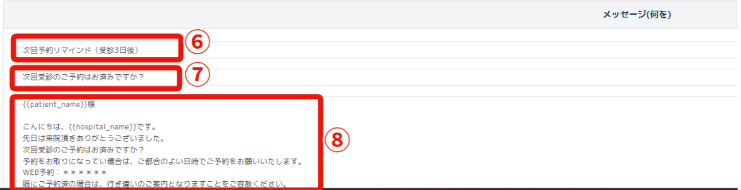 ⑦件名(患者側に表示される件名)を入力。