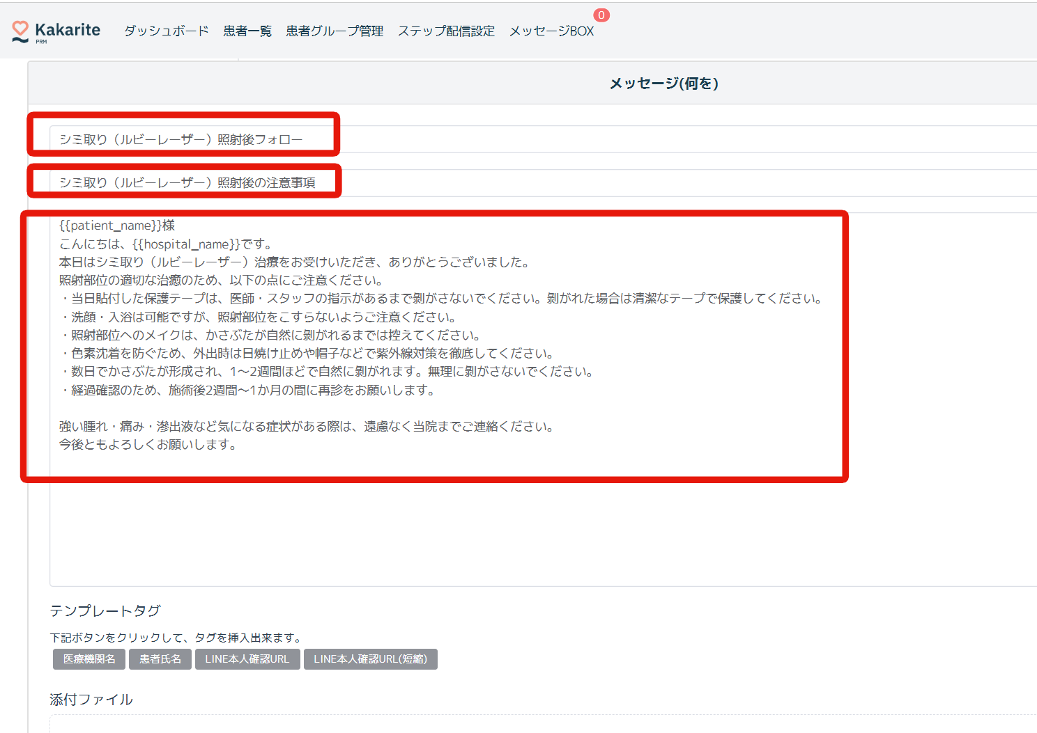 ステップ配信名:シミ取り照射後フォロー