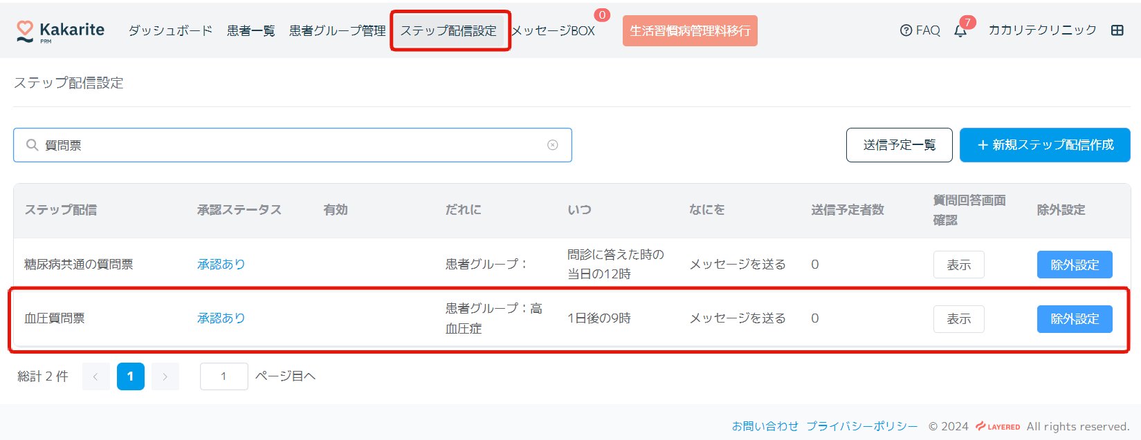 ステップ配信を設定している場合は、設定した条件をトリガーにして自動的にメッセージ・質問票が配信されます。