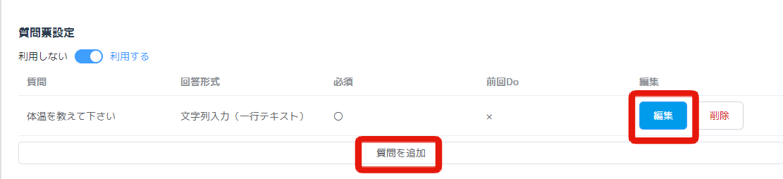既存の質問をクリックすると質問編集画面が開き、内容を編集することができます。