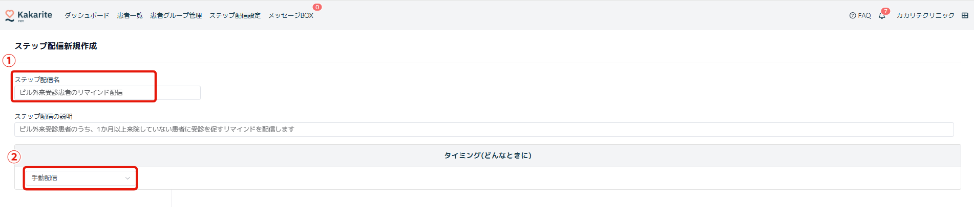 「ピル外来受診患者のリマインド配信」等わかりやすい名称にしましょう。