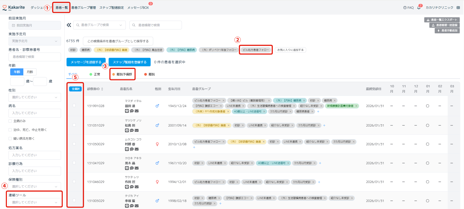 3.離脱予備群の患者に来院を促すメッセージを配信をする