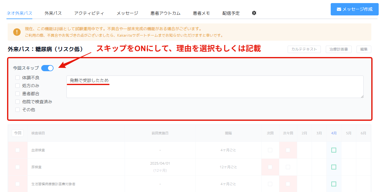 ネオ外来パスの運用方法(※β版として試験運用中)