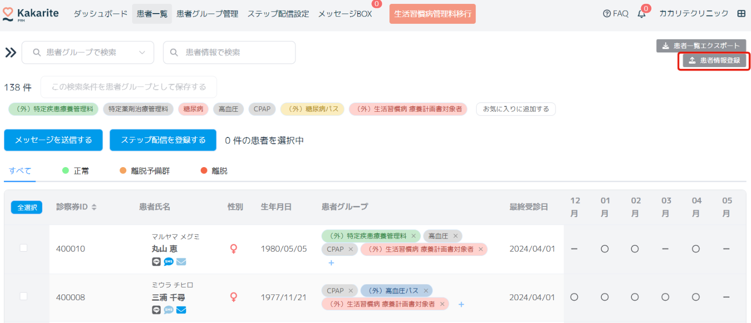 患者情報CSVをアップロードする方法