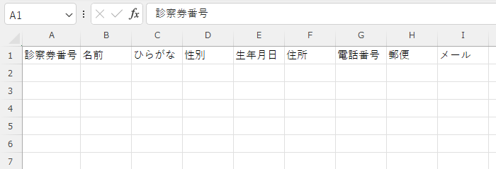 ※1行目に下記のようにヘッダー(項目名称)を入れてください。
