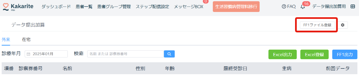 全ての患者の入力が完了したら、画面右上の「FF1出力」ボタンを押し、提出用FF1ファイルを出力します。