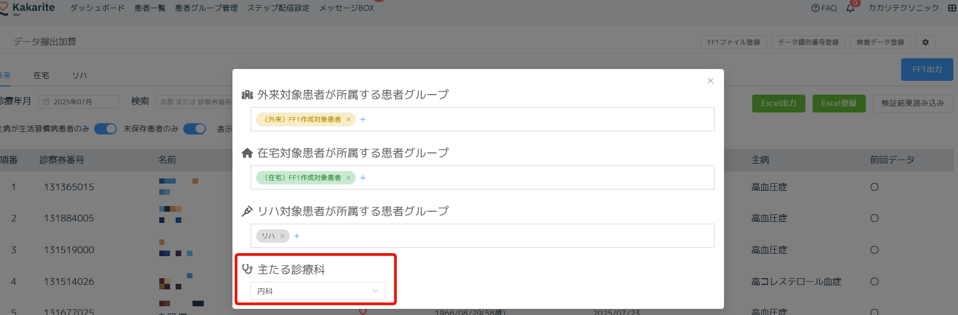 ※在宅患者をFF1に含めたくない場合は、在宅FF1を作成しない(作成済の場合はFF1削除する)ようにしてください。